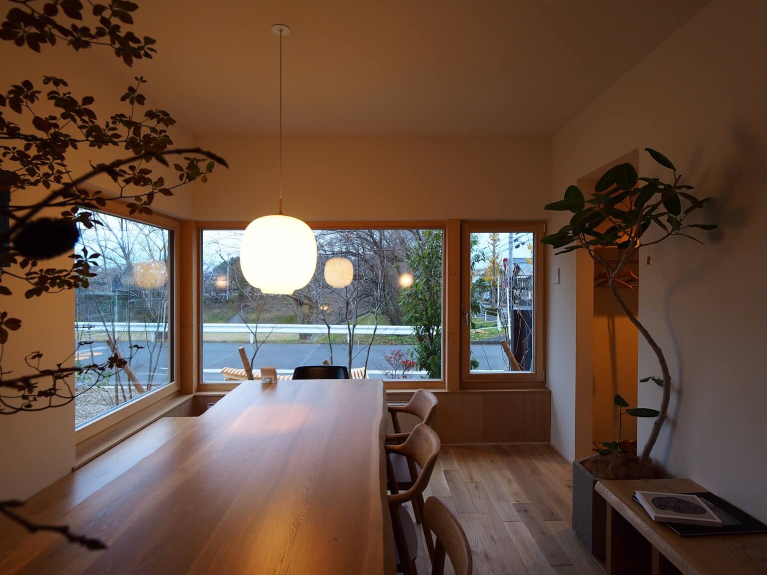 HEAT20 G3性能の高い断熱性能のモデルハウス。まだ肌寒い夜の時間に