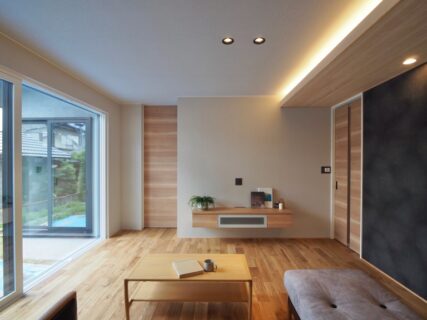 約25帖のLDKは、木のぬくもりを感じられる温かみのある空間に。