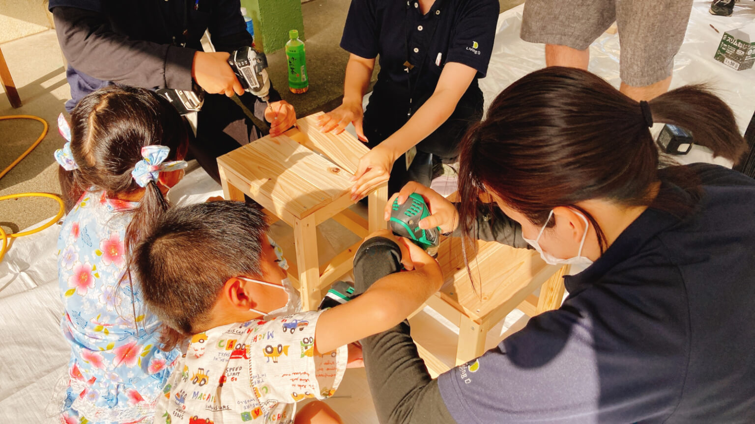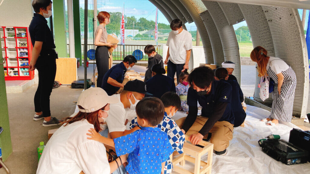 たくさんの園児たちの中、楽しいおまつりに参加しイスづくりを体験していただきました。