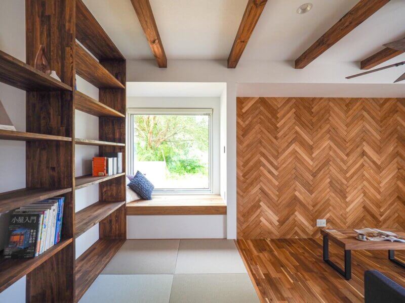 オシャレなサーファーズハウス、アカシアの床材やヘリンボーンの壁など