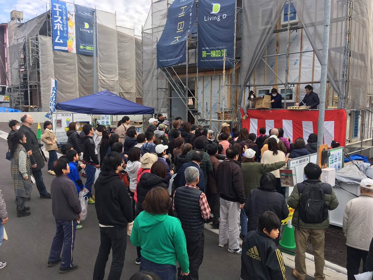 上棟を祝って集まっていただいた近隣の方々などに餅をまく行事。