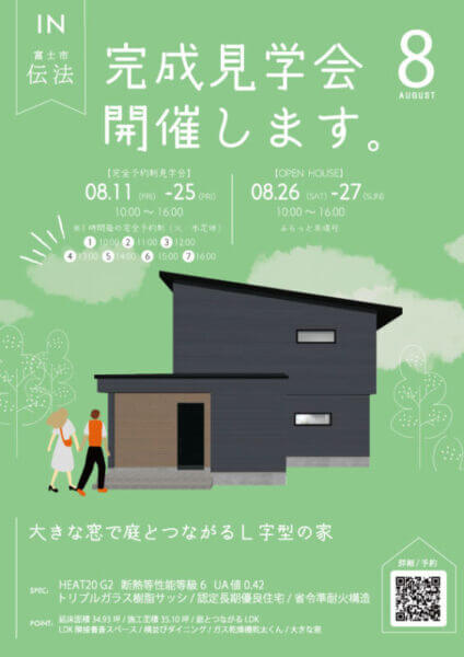 8月ご見学いただける自由設計のお家のご紹介です🌟今回の会場は「富士市伝法」です!”大きな窓で庭とつながるL字型のお家🏡”キッチンの目の前には大きな窓を設置視線がぬけるので空間がより広く感じます。間取りもプライベートなお庭を確保するL字型に。一目を気にせず、プールやBBQを楽しめますね。見学会開催日時は下記通り8/11㈮~8/27㈰まで!是非お早目のご予約をお願い致します~🌟