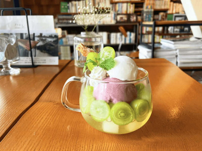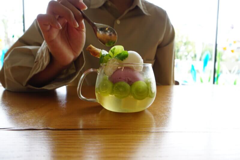 爽やか風味のアイスと、甘酸っぱいシャインマスカットを交互に味わえるパルフェ
