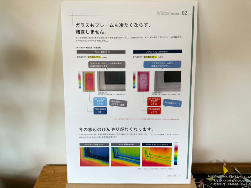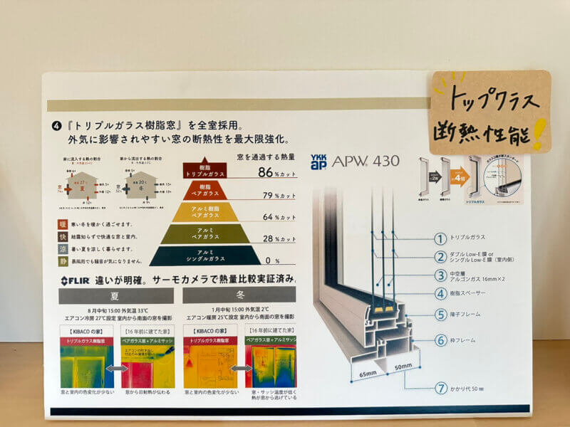 サッシも樹脂でできていて、アルミと比べると熱伝導率が1/1000と低く