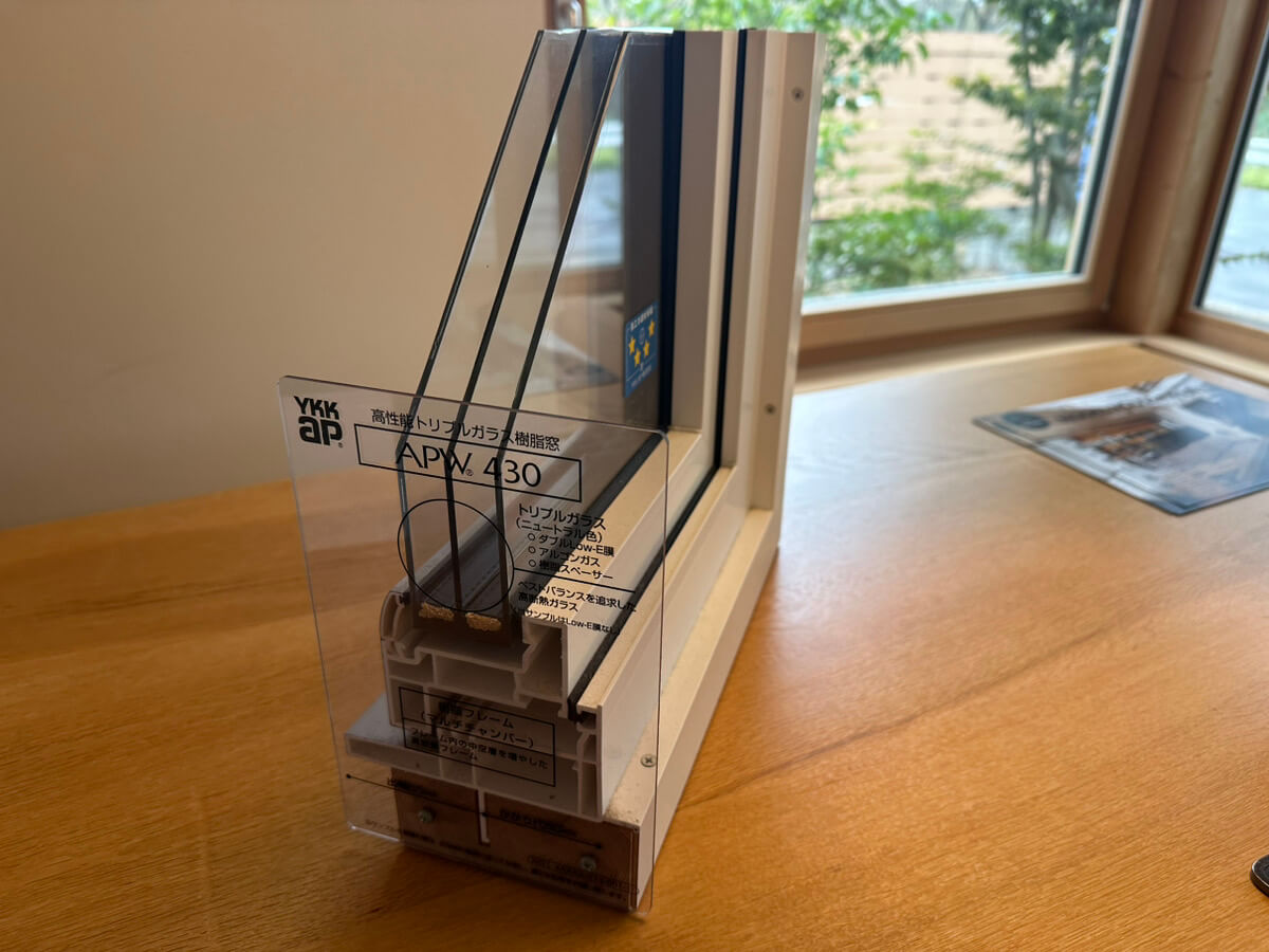 トリプルガラスの室外側2枚を透過性の高いLow-Eガラスにすることで、高い断熱性と日射取得率を実現。