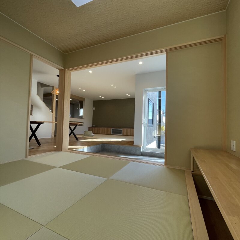 畳が好きなお施主様がくつろげるように和室だけでなくリビングや子供部屋の一部にも