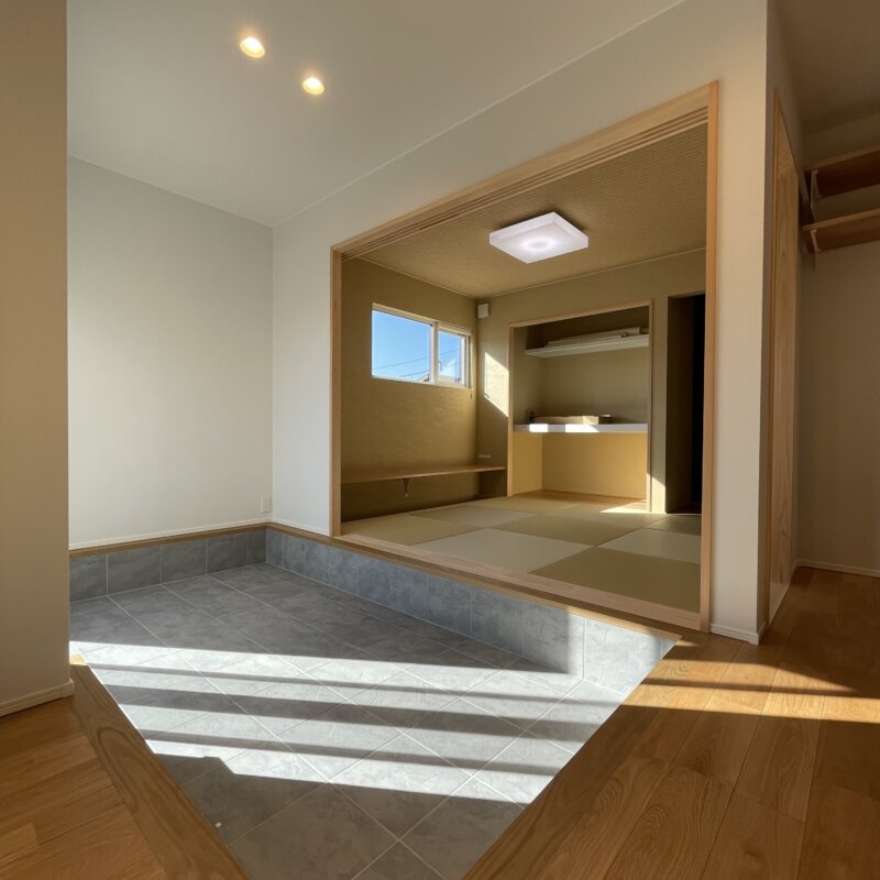 畳が好きなお施主様がくつろげるように和室だけでなくリビングや子供部屋の一部にも