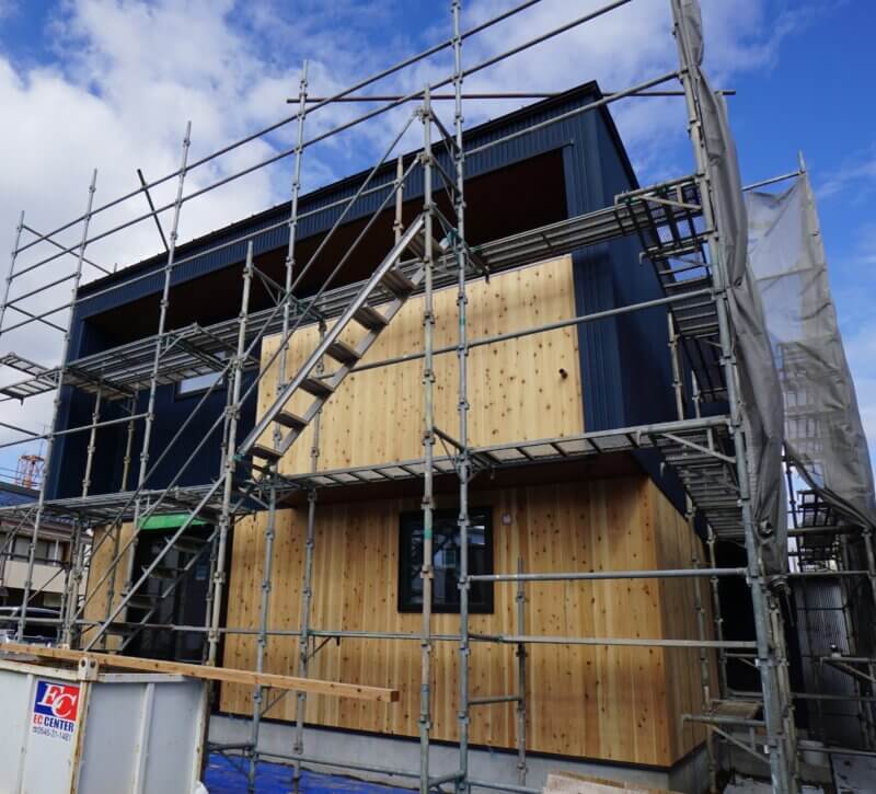こんばんは。山本です。 着工中のKIBACO01-E12のお家見どころになる”杉の外壁材”が張られました。 木目の風合いの良さ、木の外壁はメンテナンスしにくいイメージですが、部分的な張り替えもできて実はとても扱いやすい材料なのです。 塗装も施して、現状よりももう少し濡れ色になる予定。 経年美化として素材の変化、風合いの変化を愉しんでいただけます。 様子を見ながら、塗装をしていただくメンテナンスをお勧めしています。 お打合せの際も経年美化とともに、今後の塗装についてまで夢を膨らませるお施主様でした。 『 ウッドワン空間デザインアワード2023 』応募作品集 >>> リフォーム・リノベーションで理想の暮らしを叶えてみませんか。リフォーム・リノベ施工事例はこちら >>> 断熱リフォームのお家 施工事例 LIXILメンバーズコンテスト2022 リフォーム部門敢闘賞いただきましたLIXILメンバーズコンテスト2021 新築部門 敢闘賞いただきましたLIXILメンバーズコンテスト2019 リフォーム部門 敢闘賞いただきました