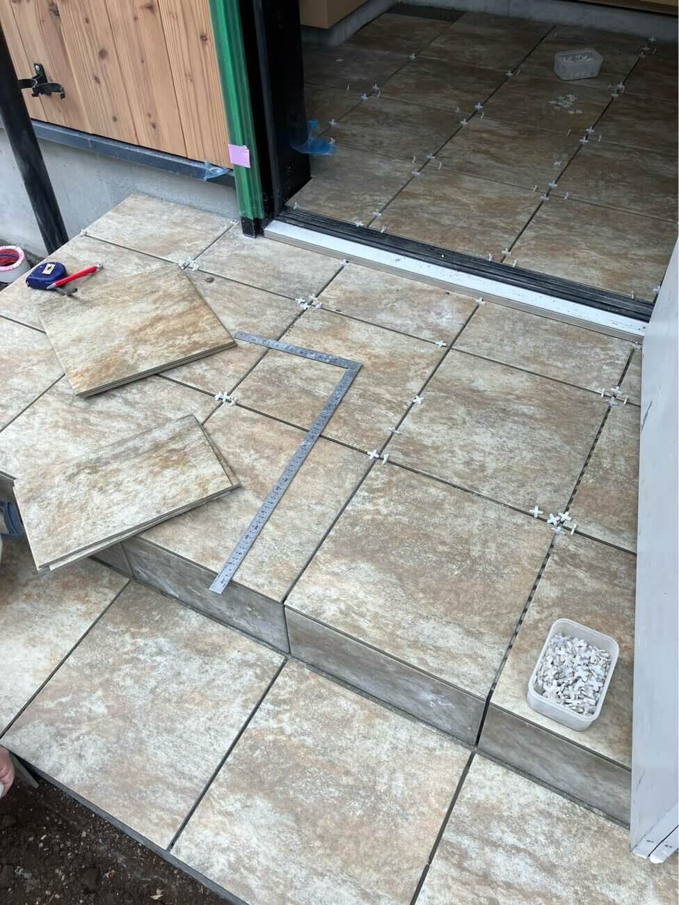 こんにちは。山本です。 着工中のKIBACOのお家は、室内のクロス工事と同時にポーチタイル貼りを行っています。 お施主様が選んだタイルは、RIVIERA エタニティ フォレスト。 その名の通り、広大な森林を思わせる少し緑がかった色調と天然石の不規則な流れと色ムラ。外壁の一部を天然木の杉板をお選びいただき、外壁との組み合わせが形になるのを楽しみにしていました。 お庭の工事では、以前のお住まいにあった天然石の手水鉢を据えられる予定で、自然素材を使った上質なお庭の計画も楽しみです。 『 性能向上リノベデザインアワード2023 』 特別賞 受賞 >>>性能向上リノベーションとは中古住宅における間取りの変更や内外装の刷新、設備の更新・改修に加え、断熱性能と耐震性能の向上を伴う改修を施した住まいです。 リフォーム・リノベーションで理想の暮らしを叶えてみませんか。リフォーム・リノベ施工事例はこちら >>> LIXILメンバーズコンテスト2022 リフォーム部門敢闘賞いただきましたLIXILメンバーズコンテスト2021 新築部門 敢闘賞いただきましたLIXILメンバーズコンテスト2019 リフォーム部門 敢闘賞いただきました