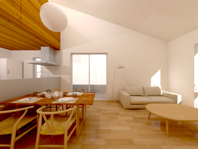 特に注目したいのは、リビングの天井。勾配天井になっており、2.6mから始まり、一番高い部分では4.35mにも達します。開放感あふれる空間で、ゆったりとした時間をお過ごしいただけます。