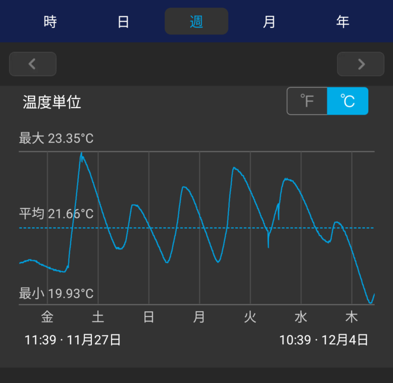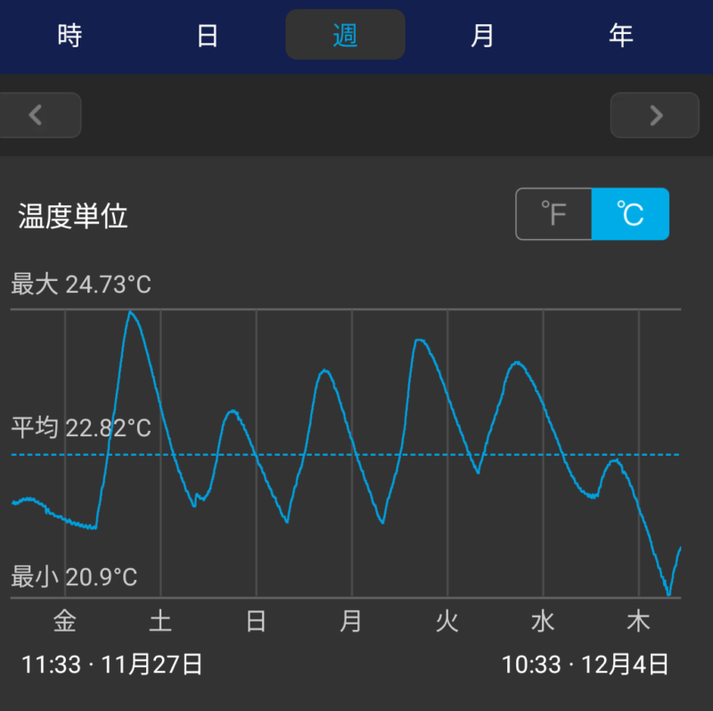エアコンは2階の勾配天井のところにある8畳用エアコンを24℃で24時間自動運転で可動