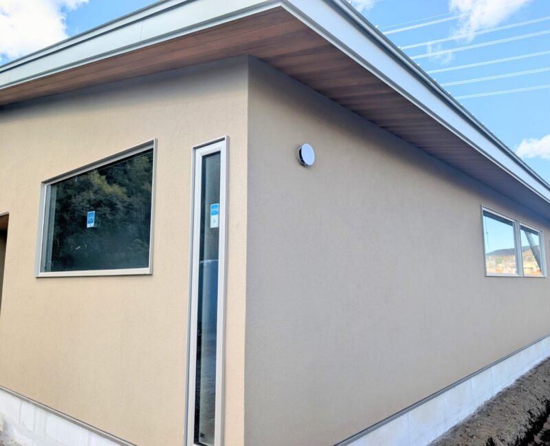 新しく建築中のモデルハウスも同じ塗り壁を使用。