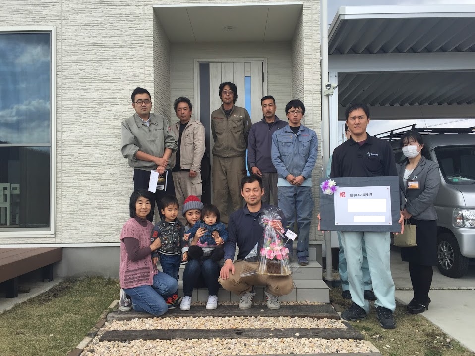 本日は、住まいの誕生日おめでとうございます。 今日の日のお喜びを、お客様より一言お願い致します。 「「無事に1年経ちました。夏は涼しく、冬は暖かく過ごしやすかったです。広くなったリビングで 兄弟が楽しく遊ぶ姿を見ながら料理が出来て安心で嬉しかったです。」 ※メッセージと写真は、お客様よりご了承頂いたものを掲載しております。