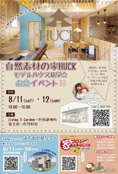条件:①8月11日(土)・12日(日)「自然素材の家HUCK見学会お盆イベント」へのご来場