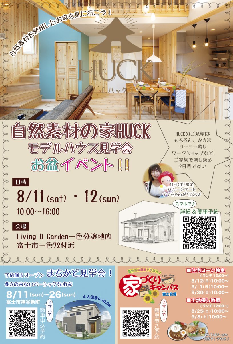 条件:①8月11日(土)・12日(日)「自然素材の家HUCK見学会お盆イベント」へのご来場