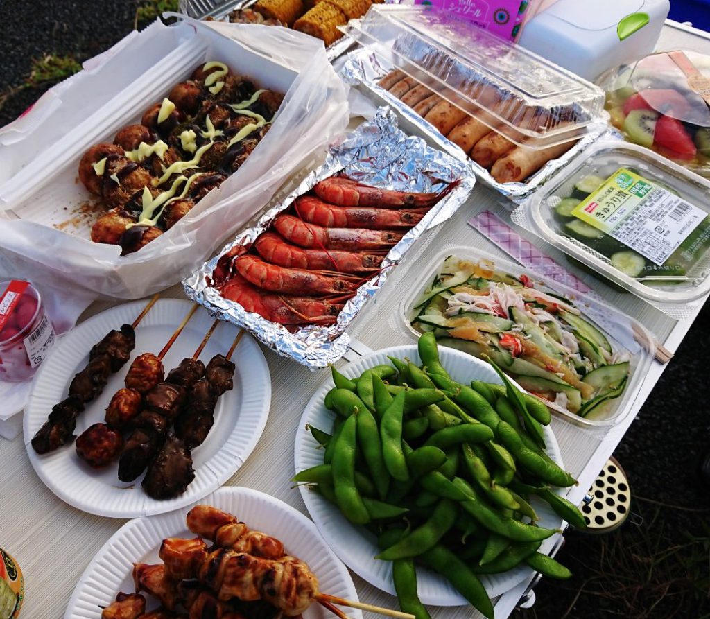 それぞれ食べ物を持ち寄り花火が上がるのを待ちながら