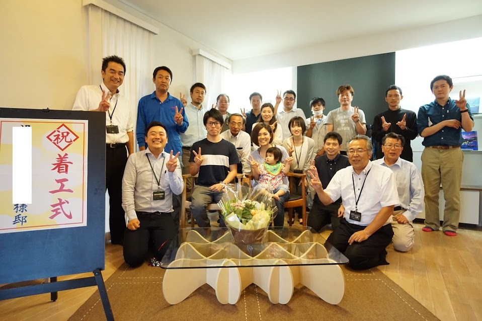 「今日は、多くの工事関係者の方々が私たちの為に、お忙しい中集まって頂き 着工式を行ってくださりありがとうございました。設計の解りやすい説明、営業が作ってくれた動画、大工さんの宣誓を聞き