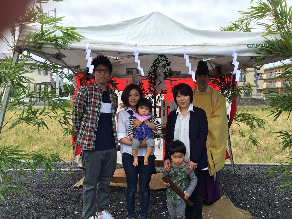 「本日は、地鎮祭ありがとうございました。天候が心配でしたが天気ももち、良かったです。新しい土地に住むと言う事に再度実感がわき、大きな期待と安心感を得る事ができました。