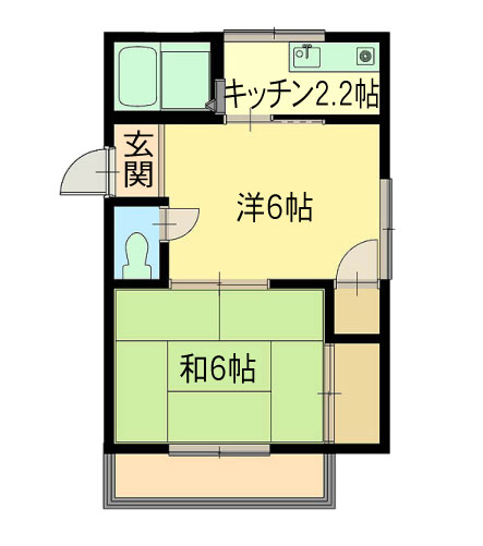 単身者向けの間取(2K)ですが、2人暮らしもO,Kです!