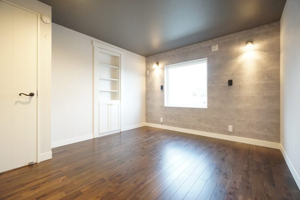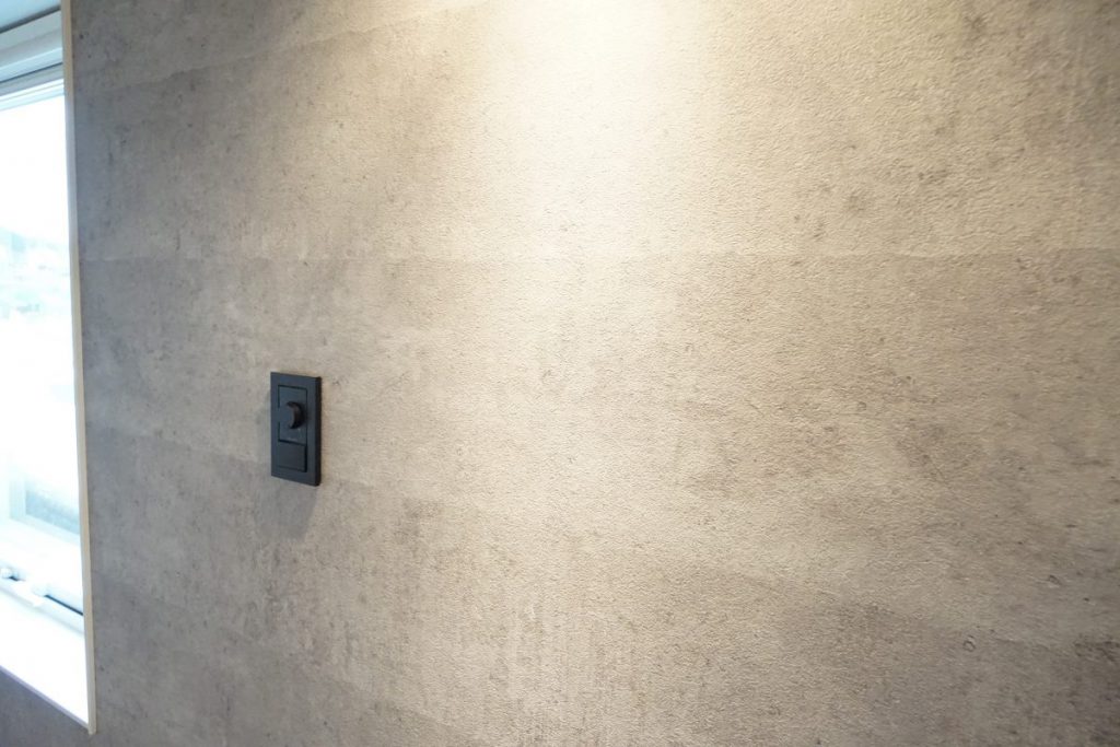 ここにも本物のコンクリートを塗ってるのかな?!と思わせるような壁紙があります。