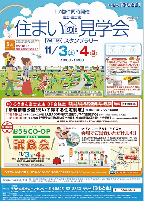 今週末11月3日(土)4日(日)は「ろうきん住まいの見学会スタンプラリー」が開催されます。