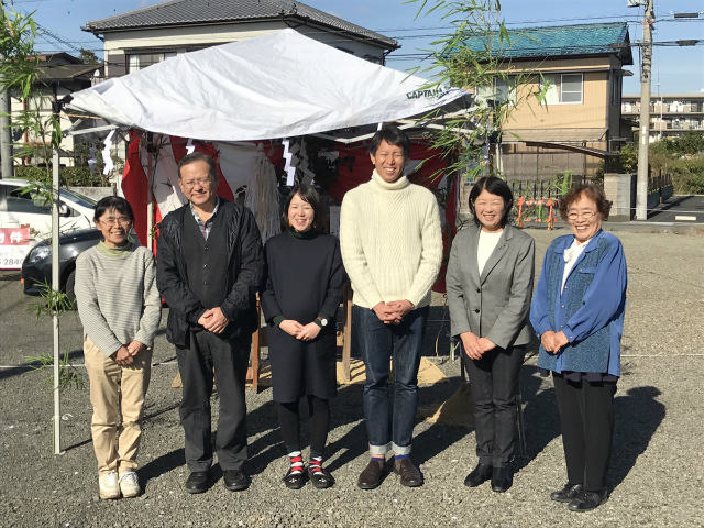 本日は、地鎮祭おめでとうございます。今日の日のお喜びをお客様より一言お願い致します。 「本日は、ありがとうございました。関わって下さる全ての皆様に恵まれ、晴天の中気持ち良く 地鎮祭を行う事ができ、とても嬉しく思います。第一建設の方を始め、多くの方にご尽力頂き 私達の家が出来るのだと思うと今から楽しみで仕方がありません。最後までよろしくお願い致します。」 ※メッセージと写真は、お客様よりご了承頂いたものを掲載しております。