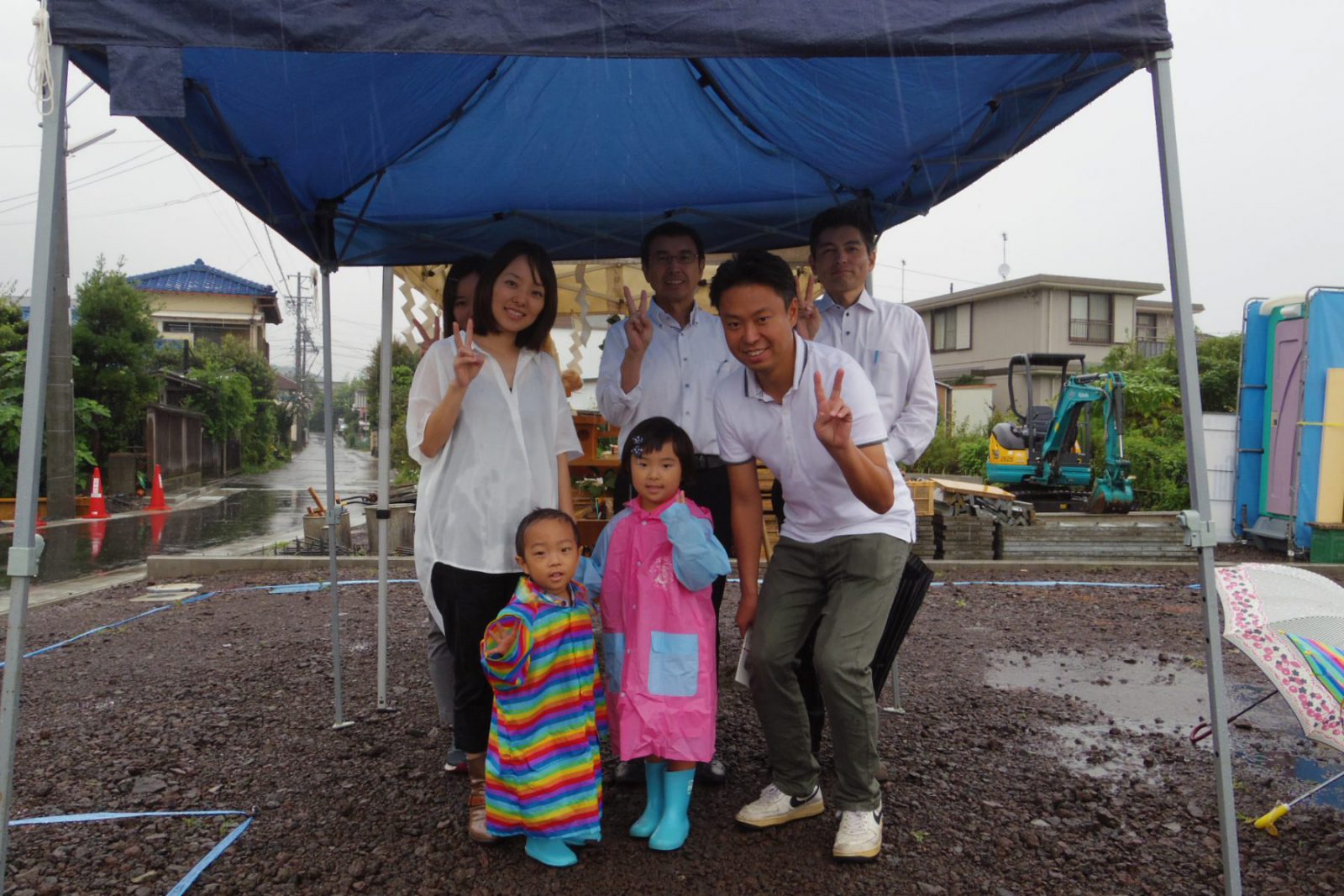 本日は、地鎮祭及び着工式おめでとうございます。今日の日のお喜びをお客様より一言お願い致します。 「本日は、地鎮祭ありがとうございました。あいにくの空模様でしたが、滞りなく行う事ができ嬉しく思います。第一建設の皆様、ありがとうございます。今後ともよろしくお願い致します。」 「着工式では、多くの方にお集まりいただきありがとうございました。これから家を建てて下さる方々とお会いでき、嬉しく思います。これから家が建っていくのが楽しみです。」 ※メッセージと写真は、お客様よりご了承頂いたものを掲載しております。