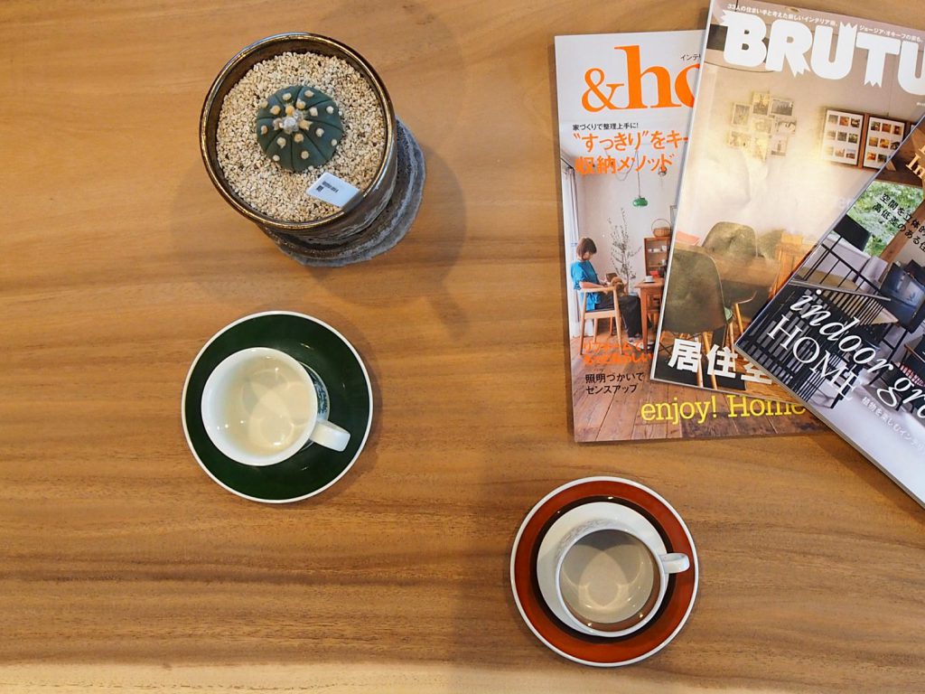 HANAREで販売している一枚板。樹・BACOにはモンキーポッドのテーブルがあります。モンキーポッドのローテーブル×北欧カップ×多肉植物×インテリア雑誌なんとなくおしゃれに撮れました★●樹・BACO02ご予約・詳細は画像をクリックHIBIKI富士店 玉田琴美