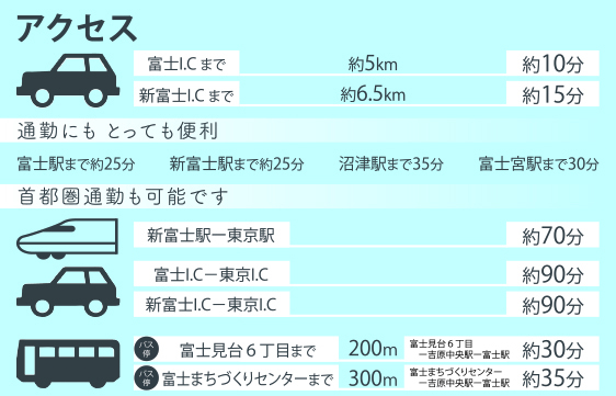 通勤にとっても便利は分譲地です。①富士見台小学校 約750m 徒歩約10分②吉原北中学校 約628m 徒歩約8分③みのる幼稚園 約940m 徒歩約12分④リズム幼稚園 約686m 徒歩約9分⑤神戸幼稚園 約940m 徒歩約12分その他、マックスバリュまで徒歩約4分・内科・歯科など病院も近くて家族も安心です!徒歩で行ける公園が5つもあります。子育てしやすい環境です。詳細はこちらをご覧ください。https://www.livingd.jp/fudousan/?p=1013&preview_id=1013&preview_nonce=322daedbcf&_thumbnail_id=1373&preview=true第一建設㈱富士支店 二又川武政