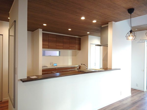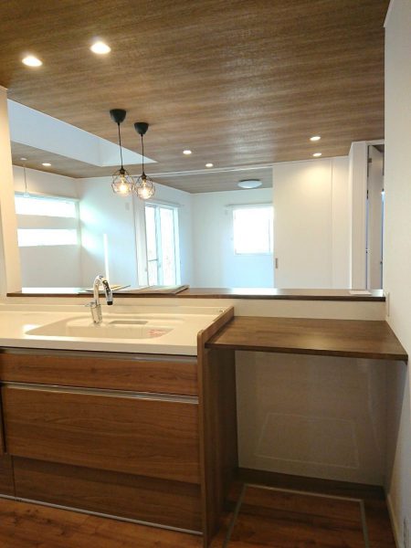 ボードを取り付ける壁とキッチンの間にカウンターを設置