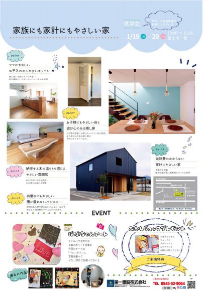 子育てファミリー向けの見学会 1/20(sun) 10:00~16:00