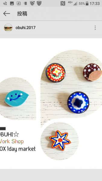 17日限定でタイルで作るブローチのワークショップをおぶひ☆さんに行っていただきます