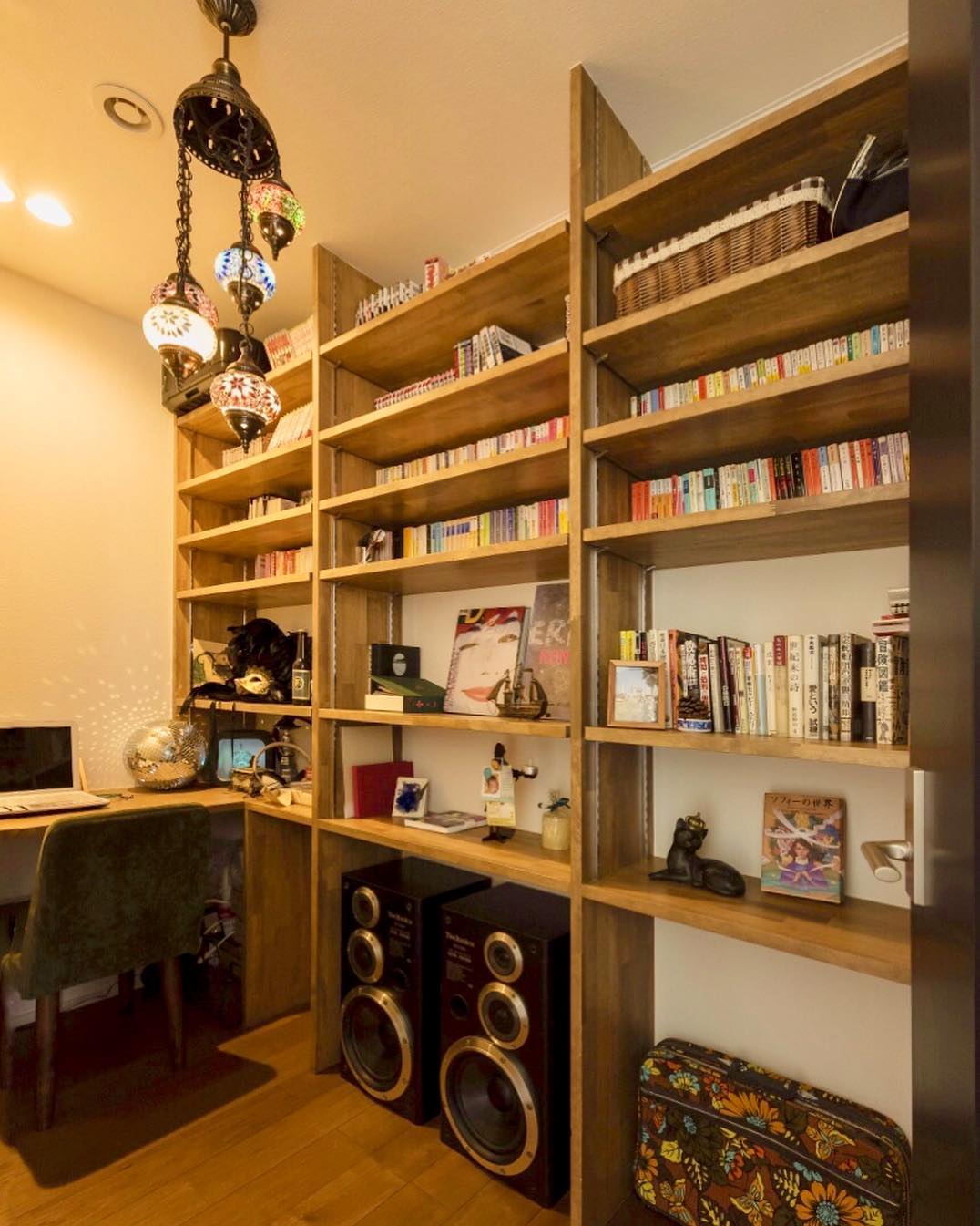 壁一面の本棚、オーディオ、パソコンデスク、オシャレな照明…… 自分の“好き”を詰め込んだ空間を作るのも、お家づくりの楽しみのひとつですね️ @ フリープランHIBIKIPremiumの魅力の詰まったカタログ請求はコチラ▼