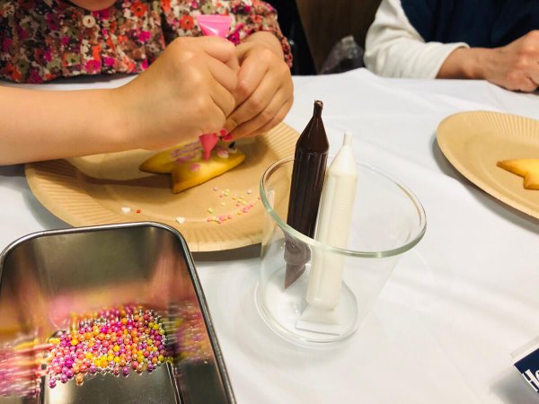 デコクッキーづくりでは、みんなでクッキーにこいのぼりの模様を描きました🎏