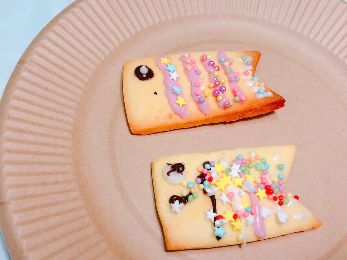 デコクッキーづくりでは、みんなでクッキーにこいのぼりの模様を描きました🎏