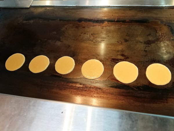 目の前でどら焼きを焼いてもらい