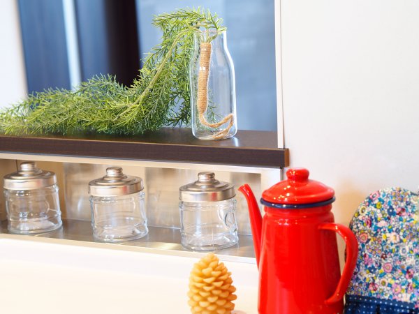 埋込収納なのでキッチンカウンターがすっきりとして使えます。
