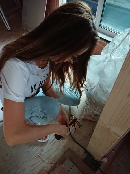 2階のリビングへの入り口にある柱にご夫婦で打ち込んでいただきました