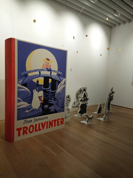 ムーミンの小説・絵本の挿絵・表紙の原画やスケッチが展示されていて