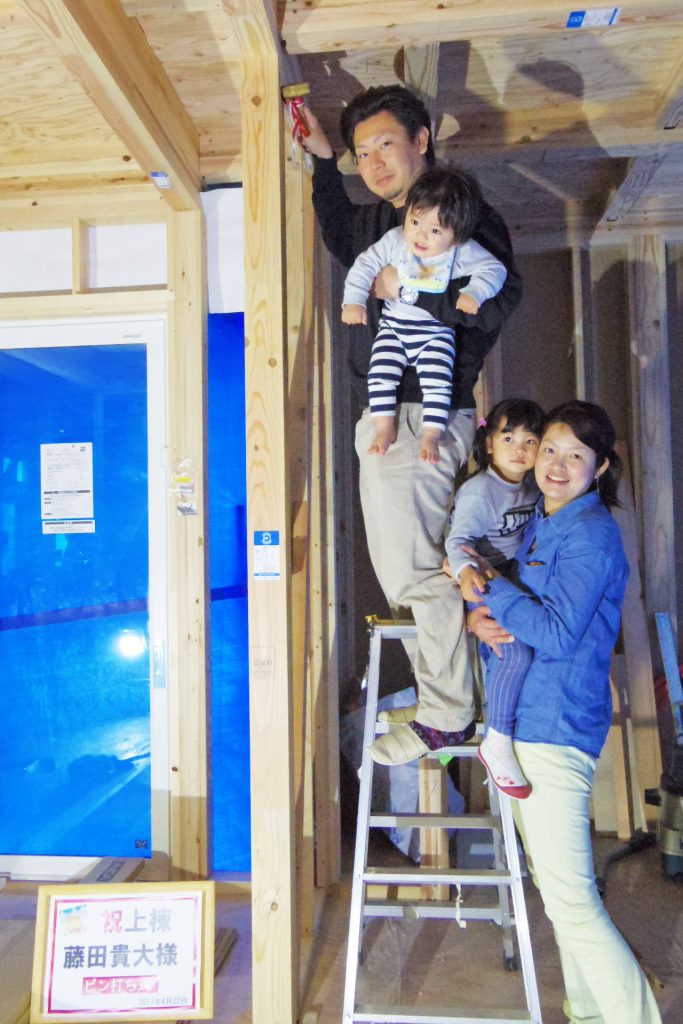 本日は、上棟式おめでとうございます。今日の日のお喜びをお客様より一言お願い致します。 『本日はありがとうございました。 無事に今日という日を迎えられたこと、本当に嬉しく思っています。 現場に行くたび木のいい香りに癒され、早く住みたいなと思っています。 工事が進んで形になっていく家を見て、ワクワクが止まりません!!』 ※メッセージと写真は、お客様よりご了承頂いたものを掲載しております。