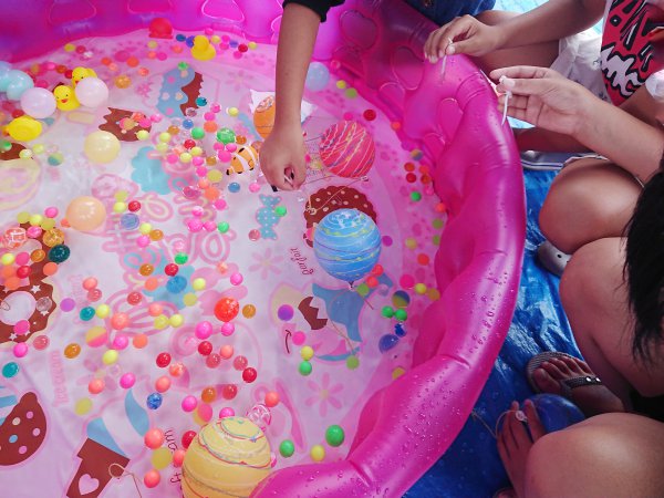 雨でも楽しんでもらえるように的あてやお菓子のプレゼントもしています。