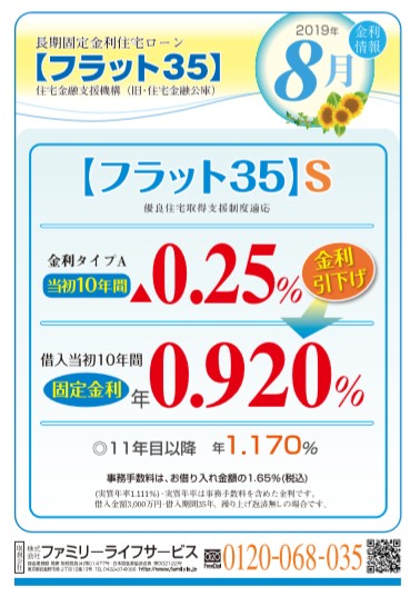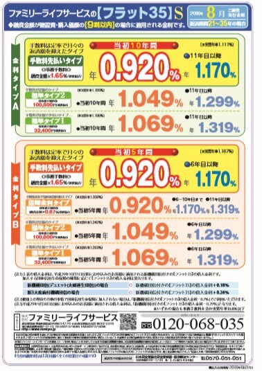 ファミリーライフサービスの固定金利フラット35S金利Aタイプの金利が