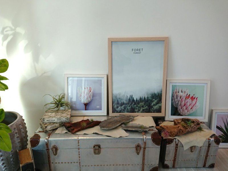 今回は絵とともにドライフラワーを飾っています