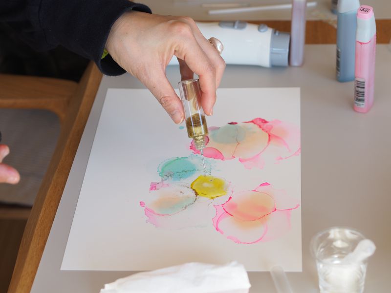 オイルインクアートも色鮮やかなお皿が完成しみなさん集中し
