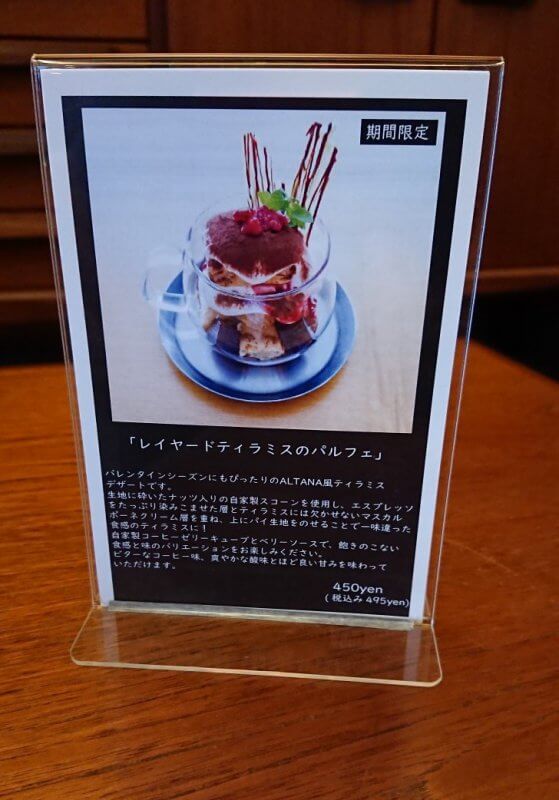 アルタナカフェのティラミスパルフェ