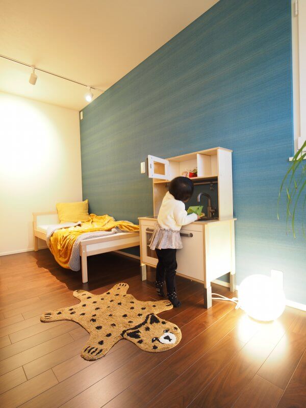 こちらのキッズスペースにはイケアの大人気キッズキッチンを設置。
