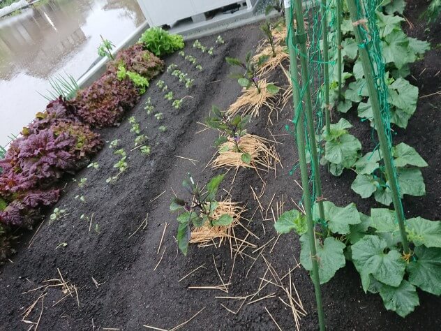 家庭菜園の畑に野菜がすくすくと育っていました