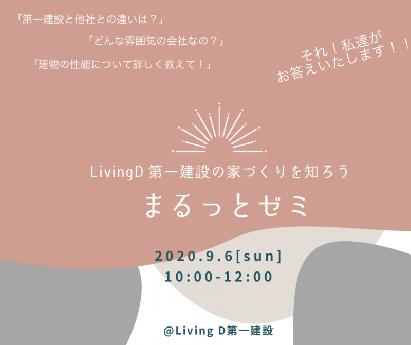 こんにちは、スタッフ小櫛です。大切なマイホーム作り。会社によって様々な良さ、ありますよね。私達は家づくりの完成がゴールとは考えておりません✨🏠建てた後に始まるお客様の暮らしが快適でより良いものでありいつまでも安心してお過ごしいただける家づくりをしております☺️『第一建設ってどんな会社なの❓❓』はい!ぜひ一度まるっとゼミへお越し下さいね皆さまからの質問も、包み隠さずその場で丁寧にお話しいたします。まるっとゼミ詳細最後までお読みいただきありがとうございました!会場で皆様のお越しをお待ちしております☺︎企画広報室 小櫛香穂