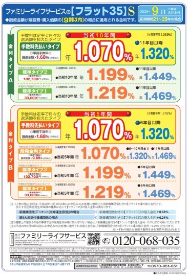 9月のフラット35S金利情報 【富士支店】