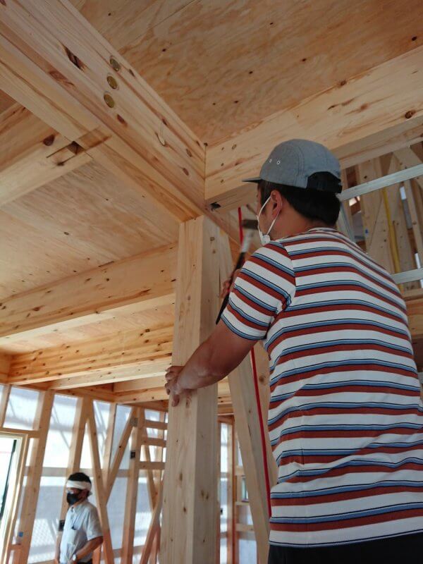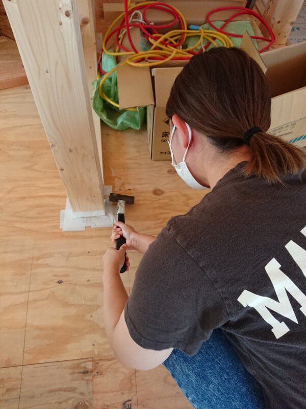 そして柱のピンを打ち込んでいただく